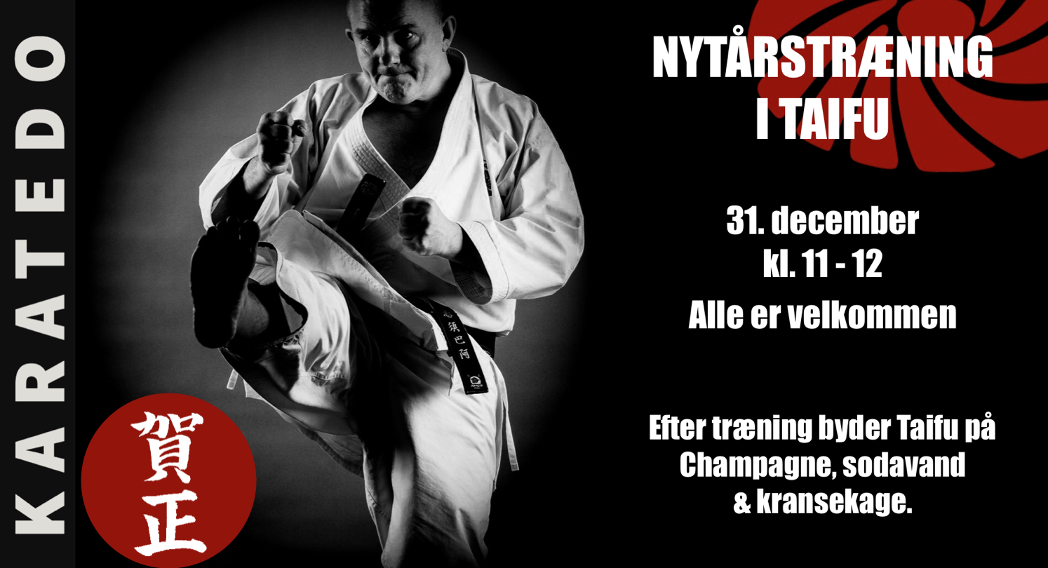 Også i år afholdes der nytårstræning i Taifu. Det plejer at være en populær træning, hvorfor du skal huske at tilmelde dig i facebookbegivenheden. Alle er velkommen til at deltage i træningen fra kl. 11-12. Efter træning byder Taifu på lidt til ganen.